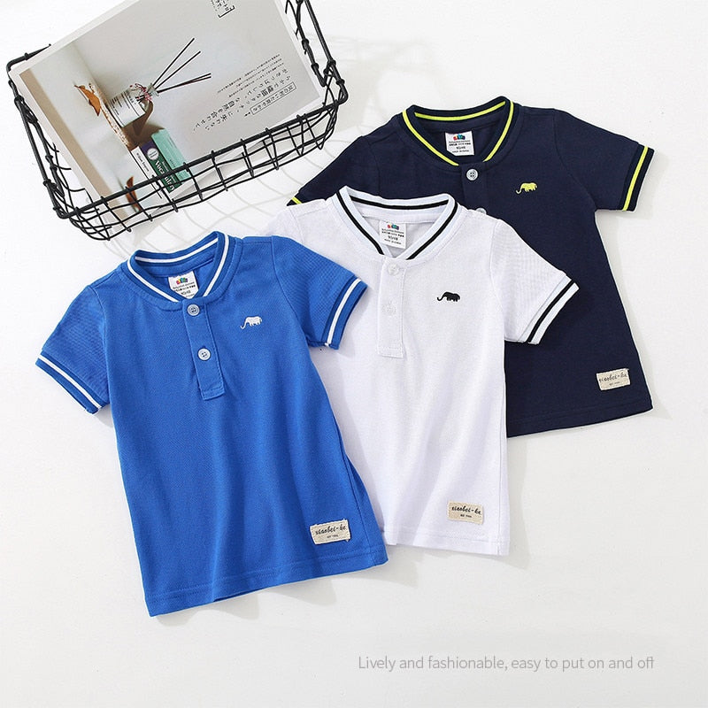 Product: Cartoon Elephant Print Short Sleeve Mandarin Collar T Shirt Kids Boys