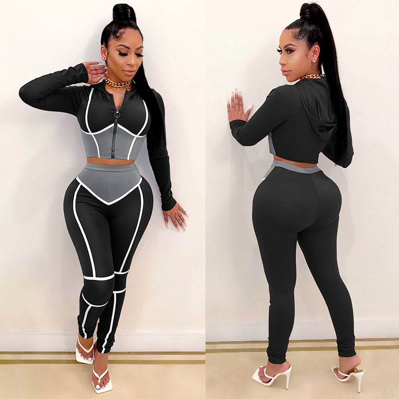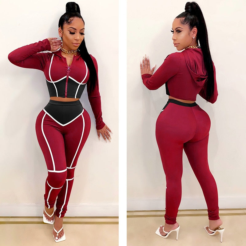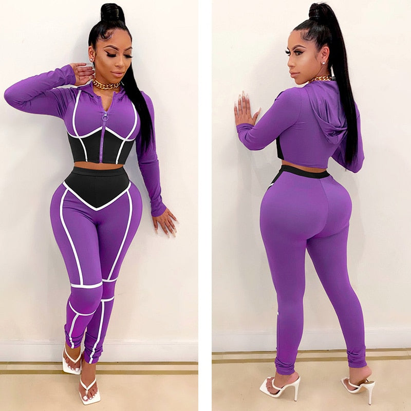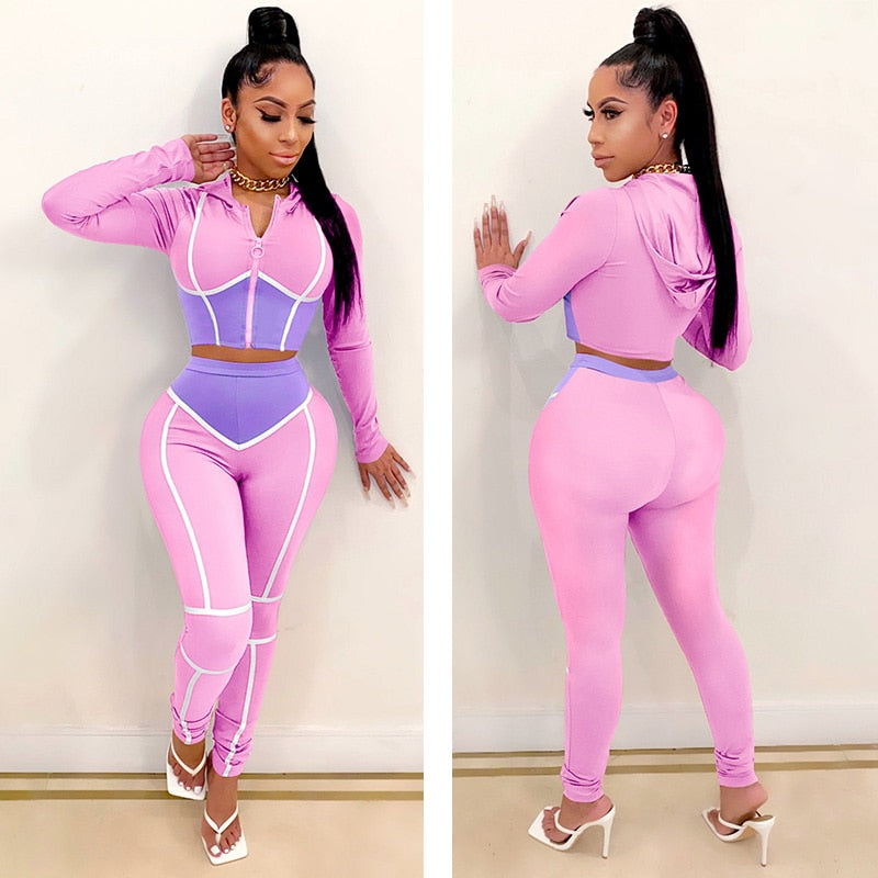Fashion Yoga Wear Women's Contrast Stitching Tight-fitting Two-piece Sports Suit Fitness & Body Building Yoga Clothing