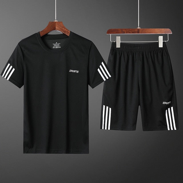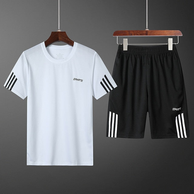 men's sportswear: Summer Men Set Sporting Suit Men Short Sleeve T shirt+Shorts